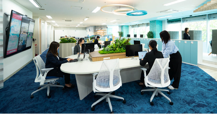 従業員は、その時々の業務内容に応じて最適な環境を選びながら仕事を進めることができ、効率的な作業とコミュニケーションの両方が促進できる設計になっています。