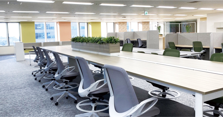 - 働き方の進化をコンセプトに、オフィス改善のコンセプト設計から、効率的な運用設計、レイアウトプランニングなど、オフィスの新しい”働きやすさ”と“生産性の向上”を創造し提案していきます。