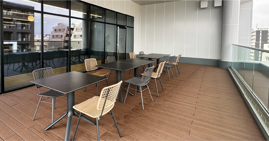 また、ガーデンテラスでは、従業員が自然光を浴びながら緑の中で過ごすことができ、リフレッシュ効果を高めるとともに、精神的な健康の向上も図られています。