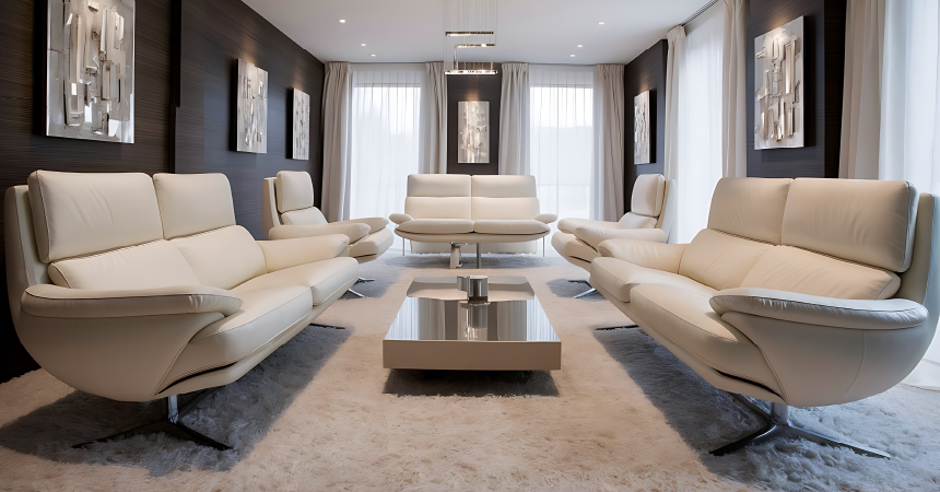 ソファやチェアを選ぶ際は、部屋の広さとのバランスが重要です。圧迫感が出ないよう事前に設置スペースを正確に測り、大きすぎないサイズのものを選びましょう。空間の印象を左右する素材の吟味も重要です。本革や合皮は高級感があり手入れがしやすく、ファブリック(布製)は温かみのある雰囲気を演出します。