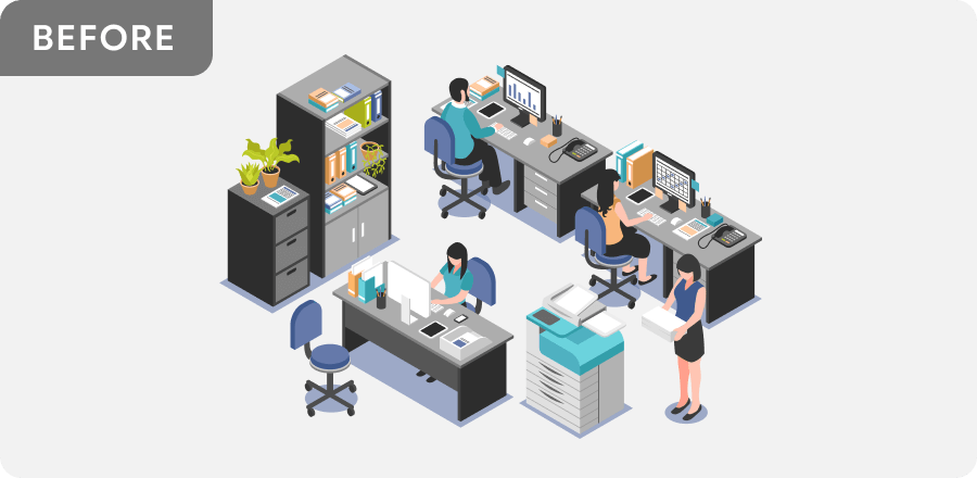 煩雑な工事や物理的な設備投資は一切不要。手間のかかる運用管理から解放され、増設・移転にも柔軟に対応。BCP対策にも貢献し、中堅企業様の新しい働き方と、持続的なコスト削減を強力にサポートします。